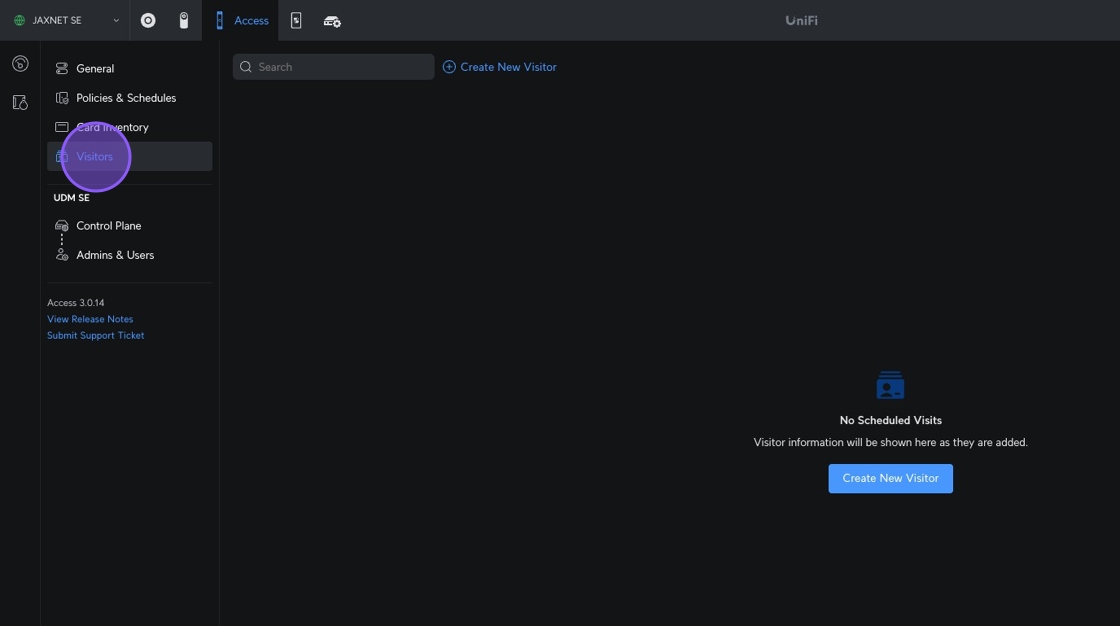 1. Navigate to https://unifi.ui.com/consoles/70A7417C521D00000000067641D90000000006C3B49C0000000062A41EDE:542551194/access/settings/visitors